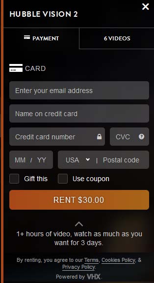 When you rent fulldome movies, the streaming delivery and the financial transactions are actually handled by our video hosting company Vimeo OTT. Here are links to their Terms of Service, Cookies, and Privacy policies. You will see links to these at the bottom of the order form, too.